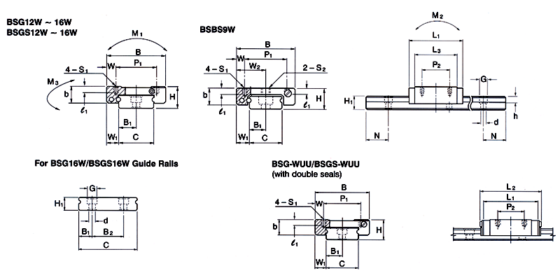 Model BSGS16W-1-310, Recirculating Wide Ball Slide Guides (BSG-W)
