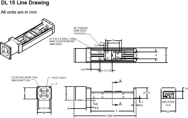 Model DL15-100-ST-PX, Series Linear Actuators