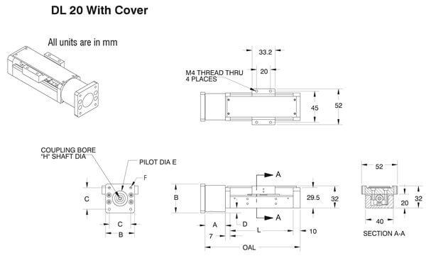| Drive | Teflon Coated lead screw 4.8mm dia with 1 mm lead |