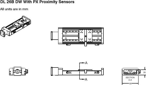 | Drive | Ball screw 6mm dia with 1 mm lead |