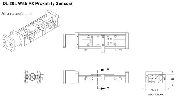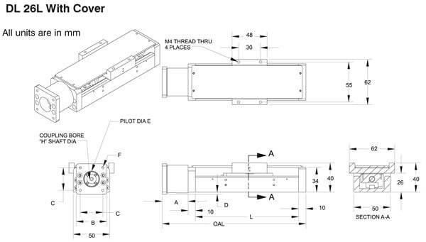 | Drive | Teflon Coated lead screw 6.35mm dia with 1 mm lead |
