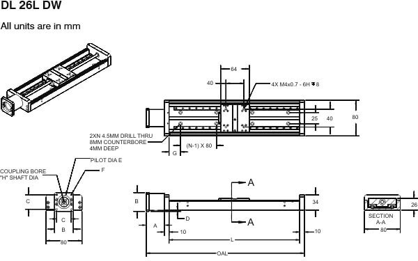 | Drive | Teflon Coated lead screw 6.35mm dia with 1 mm lead |