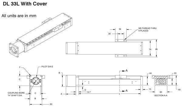 DriveTeflon Coated lead screw 9.53mm dia with 5 mm lead