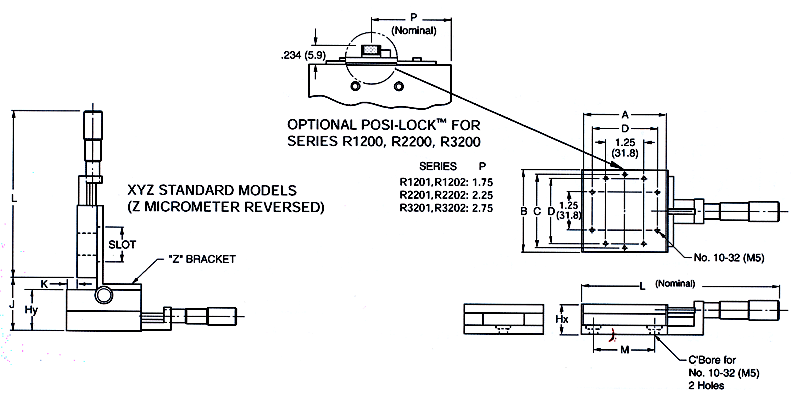 Model R2201-XYZ, Crossed Roller Positioning Stage